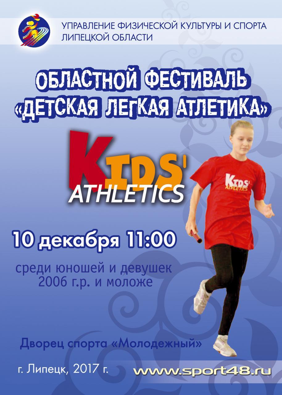 10 декабря в Липецке в 11.00 во дворце спорта «Молодежный» состоится областной легкоатлетический командный фестиваль по программе IAAF «Детская легкая атлетика» среди мальчиков и девочек 2006 года рождения.